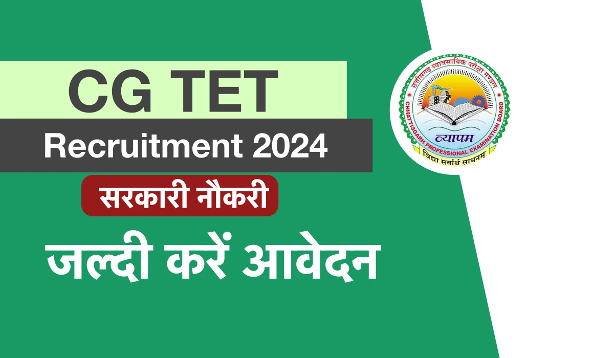 CG TET Bharti 2024: छत्तीसगढ़ व्यावसायिक परीक्षा बोर्ड द्वारा छत्तीसगढ़ में सीजी टीईटी परीक्षा के लिए नोटिफिकेशन जारी किया गया है। व्यापम ने सरकारी शिक्षक नौकरी की तलाश कर रहे इच्छुक उम्मीदवारों के लिए यह भर्तियां निकली है जिसके लिए ऑनलाइन आवेदन किया जा रहा है। लास्ट डेट,एग्जाम फीस,एप्लीकेशन प्रोसेस आदि सभी जानकारी के लिए यह आर्टिकल आपके लिए जरूरी है। सीजी टीईटी 2024 परीक्षा के ऑनलाइन आवेदन करने के लिए उम्मीदवार इसकी ऑफिशल वेबसाइट vyapam.cgstate.gov.in पर जाकर कर सकते हैं।